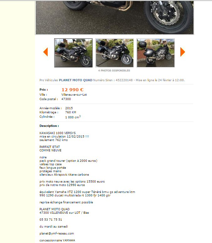 A moins de se rabattre sur l'ancienne version de la 1000 Versys qui du coup, ce serai intéressante ou la version 2015 de la 650.passepoil écrit: pas mal du tout...