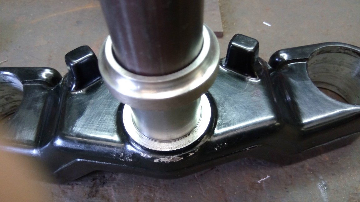 Quoi qu'il en soit, j'ai remonté le roulement, en serrant au pif pour l'instant, et le Té pivote déjà bien moins librement qu'avec les billes, je serrerai tout au couple prochainement.