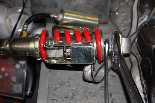 déposè l'amortisseur puis compressé le ressort sois avec un outil spécifique , ou comme moi, après avoir passer les sangles le compressé avec un serre joint, et le serré les sangle hyper tendu