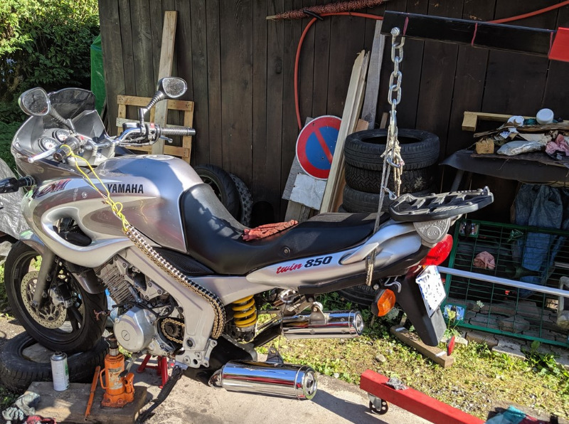 Bonne idée mais j'ai pas trop le matos pour tenir la moto car je dois enlever ma béquille de levage posée sur le bras arrière....