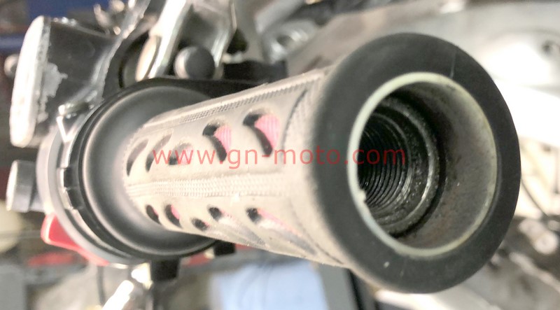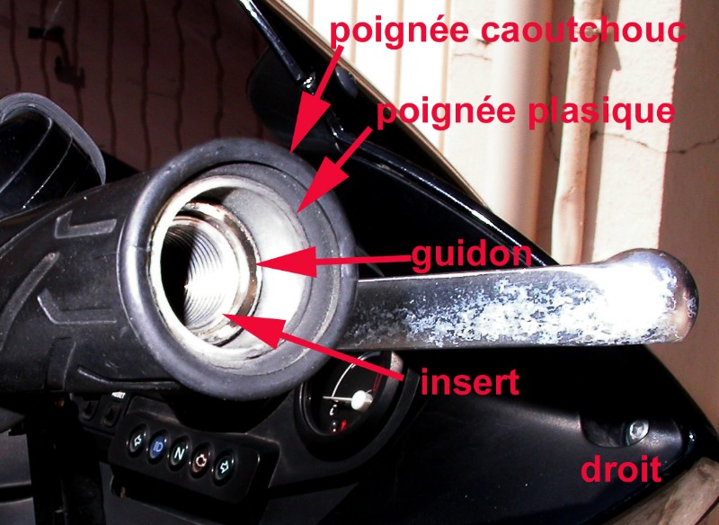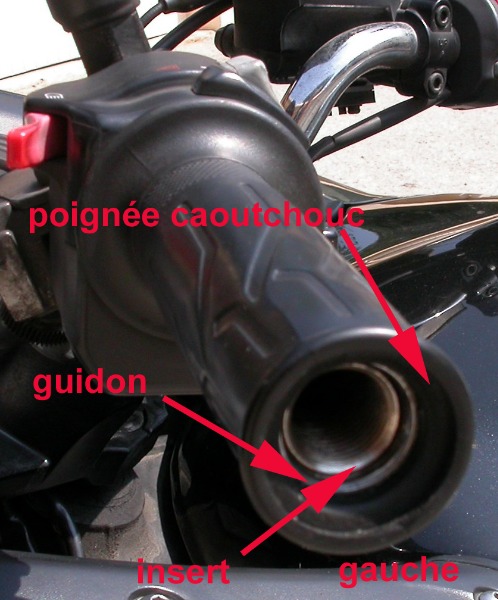pour essayer d’être + clair: d'origine, sur les tdm la poignée d'accélérateur recouvre l'embout de guidon