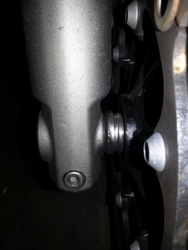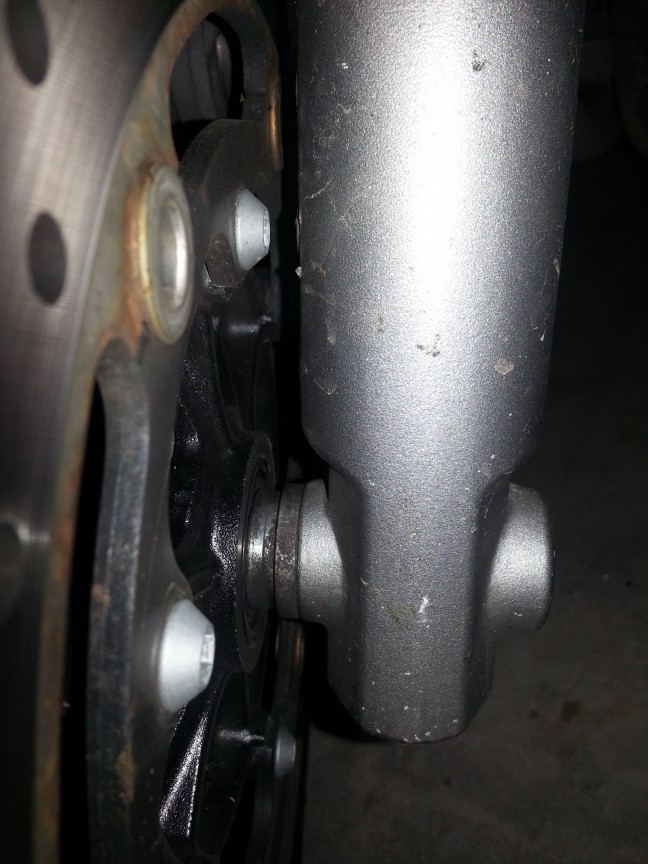 pour le moment je n'ai que des photo aux niveau de l'axe. Qu'est ce que vous en pensez. Du coté droit j'ai 13 mm entre la fourche et la roue , de l'autre 11