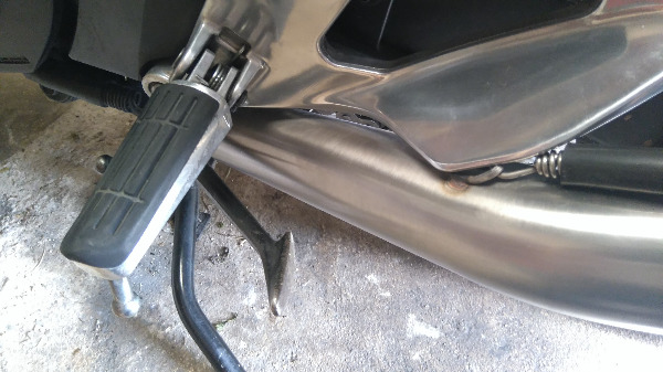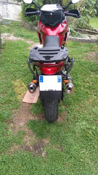 Je roule en duo et de plus avec valises, et ça m'a tout de même inquiété est ce qu' à charge et sur une chaussée irrégulière le bras oscillant ne va pas toucher les pots ? Je me suis rendu vite fait chez mon concess qui m'a confirmé que le bras risqué de toucher les silencieux à charge. :tole: Il m'a conseillé de monté le collier complètement à l'extérieur de la platine et non comme sur la photo ci-dessus. Démontage à nouveau des silencieux, un essai avec montage des colliers à l'extérieur, mais trop juste pour être certain que le silencieux ne touchent pas le bras oscillant à charge.
