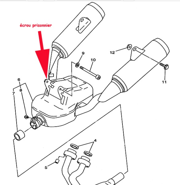 les silentblocs sont fixés sur le moteur, il y a la grande vis BTR qui vient se visser dans l'ecrou de echappement