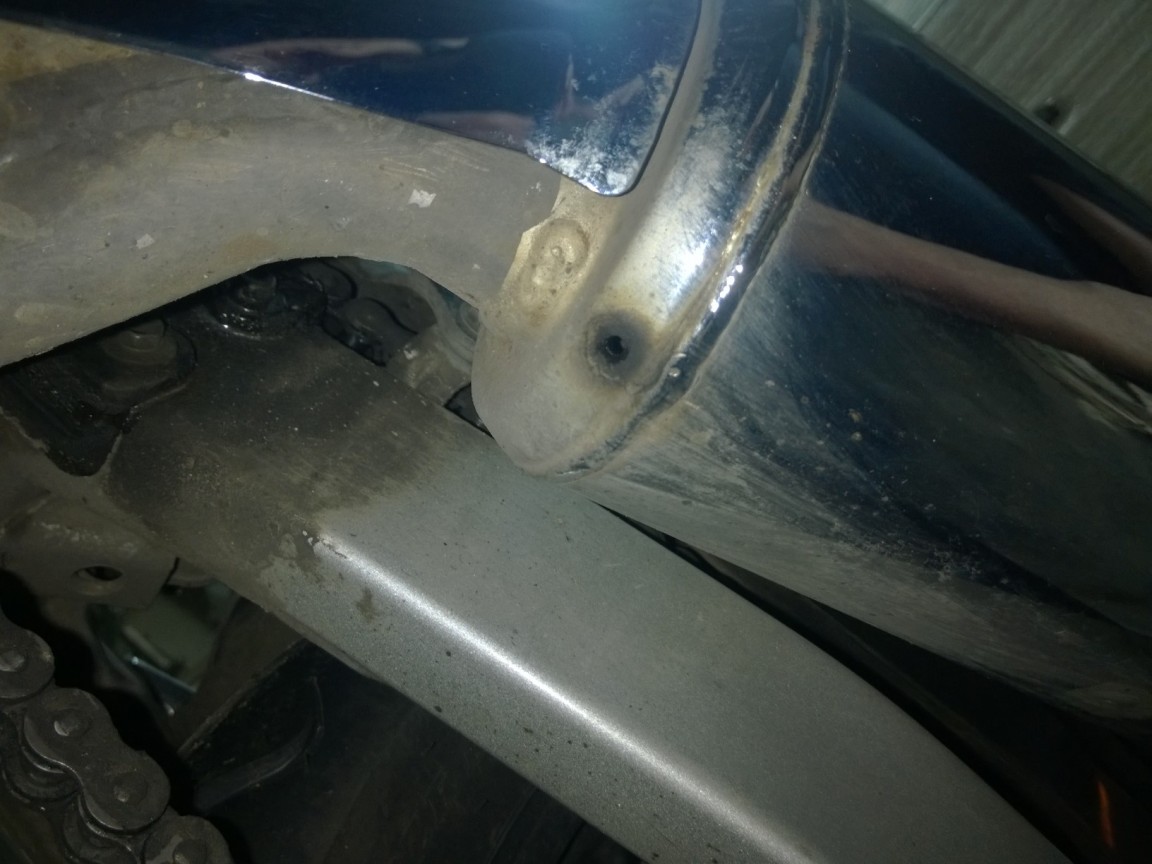 Par contre hier soir je lave ma monture, et en verifiant le niveau d'huile je laisse tourner le moteur et m'apercois qu'en dessous des pots, de chaque coté, il y a un petit trou à l'avant de la cartouche.... c'est normal????
