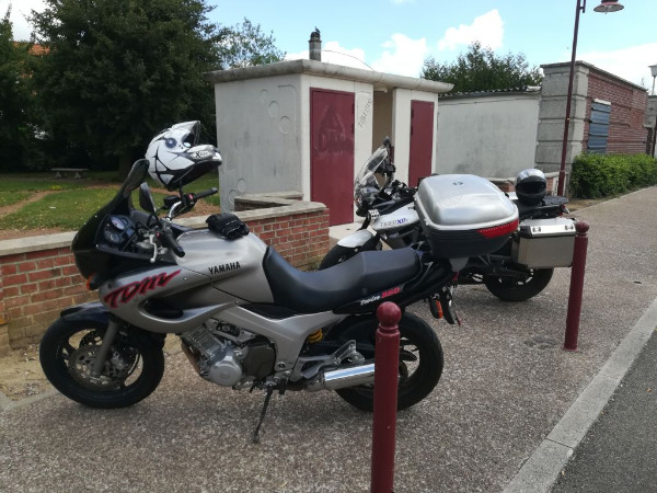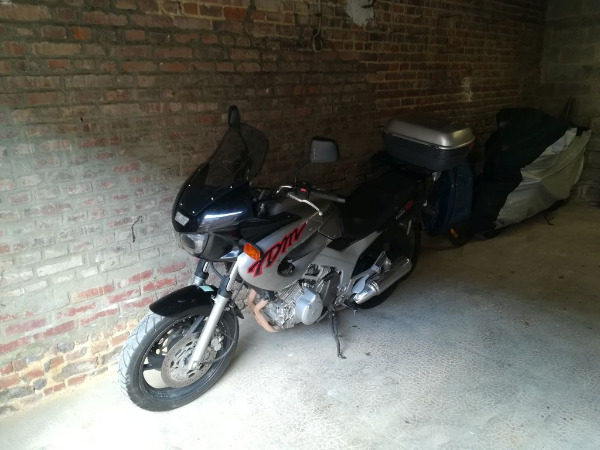 J'ai finalement porté mon envie sur ma TDM 850 de 1998 non roulant au départ. Un nettoyage du carbu à l'eau écarlate puis à l'ultrason bas de gamme le moteur démarre et j'ai pu essayer la bête, position de conduite pullman, moteur ayant du répondant et boite de camion, bref rien à signaler, me reste plus qu'à la bichonner dans la limite de mon budget. Dernièrement j'ai fait un chute à l’arrêt, à part le clignotant gauche qui n'a pas apprécié pas de dommage pour la monture mais on ne peut pas en dire autant du gus sur la selle qui s'est démis la clavicule. Après 1,5 mois de rééducation de l'épaule j'ai enfin pu faire une sortit le week-end dernier.