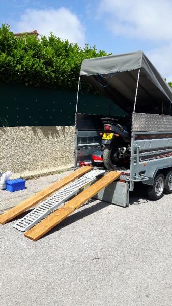 C'est chose faite depuis le Printemps dernier où après avoir acquis une remorque bagagère bachée, et l'avoir bricolée pour y insérer la moto, j'ai pû, avec ma compagne, visiter l'italie du Nord en camping car sans problème et retrouver le plaisir de visiter à moto sans contraintes . Tout cela pour dire qu'après avoir régulièrement pillé votre site de nombreuses informations qui m'ont éclairé lors de mes premiers pas (La route reste longue) de TDMiste, je me permet de me présenter dans l'éventualité où il y aurait des personnes interessées par ma création simple mais efficace.