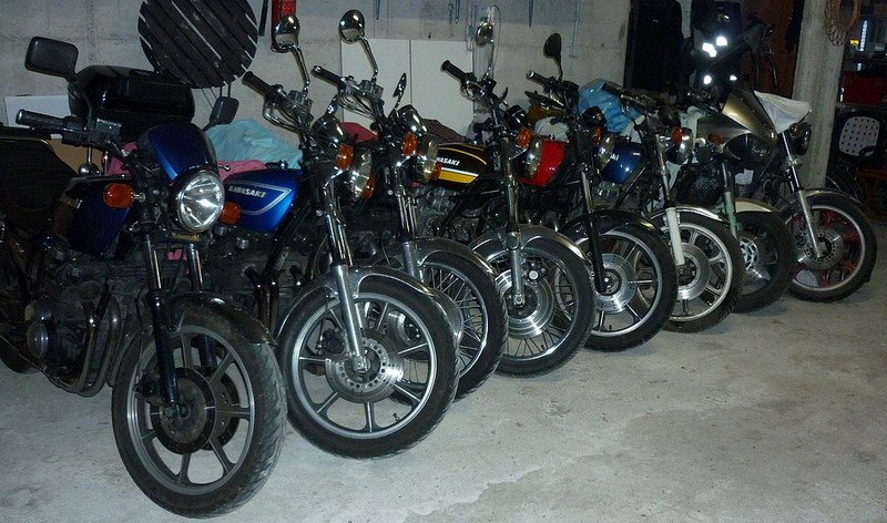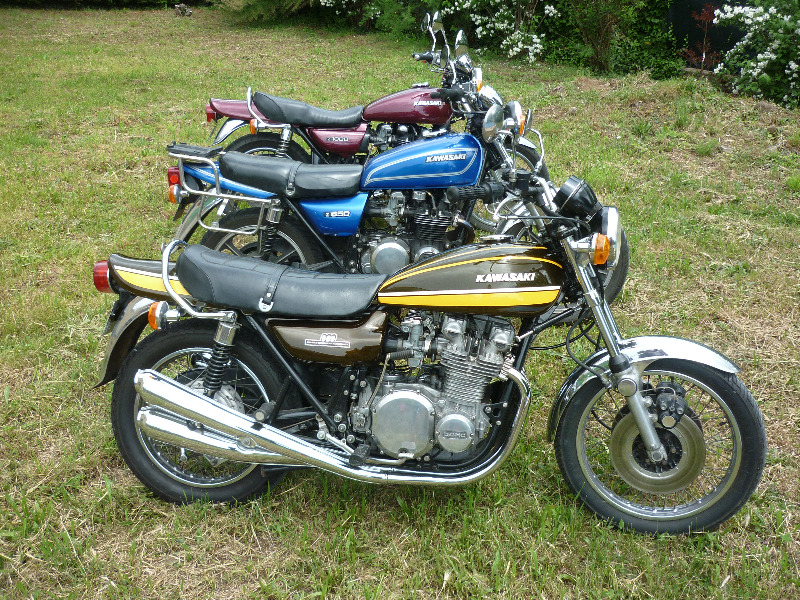 Mes motos : Une z1000A1 de 77 que j'ai depuis 34 ans et qui roule toujours régulièrement, une Z650 de 82, une GPz de 84, une z1100 en cours de resto.