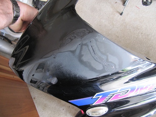 La peinture sur le carénage est en fait vinyle wrap. Le carénage avait une égratignure laide donc c'était un moyen pas cher et facile à dissimuler.