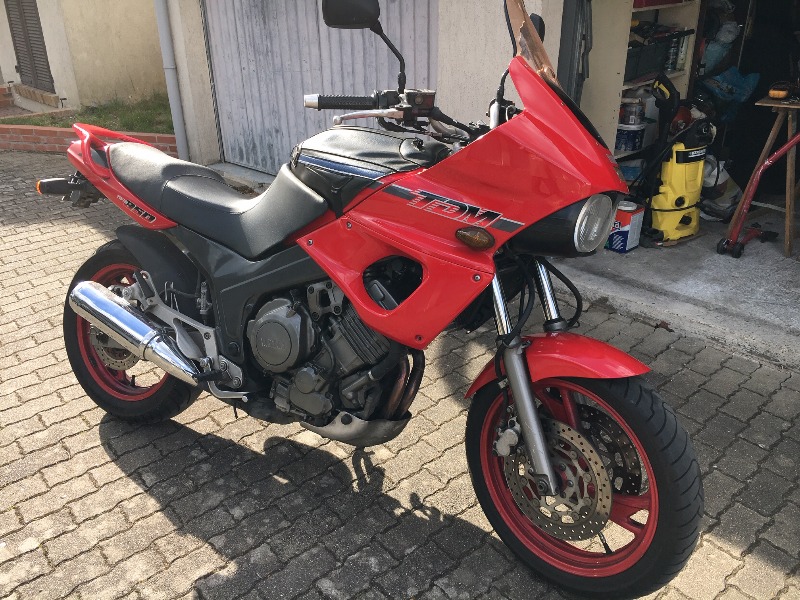 - Le 1er TDM m'a apporté beaucoup de bonheur, modèle 91, rouge avec le cadre gris foncé (typique des 91/92), échappement