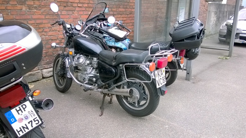 ... J'ai un peu craqué pour sa déco pas banale, un petit équipement de base déjà correct (bulle semi-haute, selle confort et top-case SHA58X modulable 3 volumes), jeu de clés d'origine. Elle est en bon état, aucune fuite, pas de bruit suspect, un ralenti bien équilibré même à froid (500tr/mn au 1er démarrage dès suppression du starter), donc pas de grosse surprise à venir j'espère.