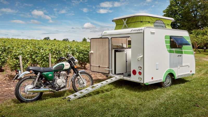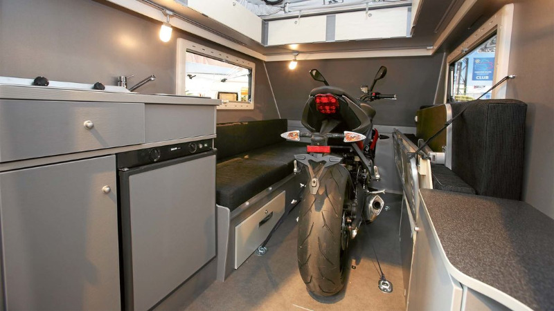 Pour voyager avec sa mob. Plein de bonnes idées , des aménagements......mais les tarifs sont encore dissuasifs.