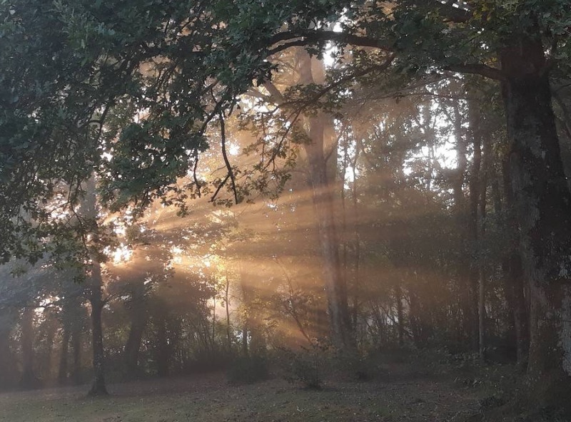 Grand soleil ici mais avec le coup de vent de ce week-end les routes en forêt sont couvertes de branchages, feuilles mortes et bogues de châtaignes : gaffe !