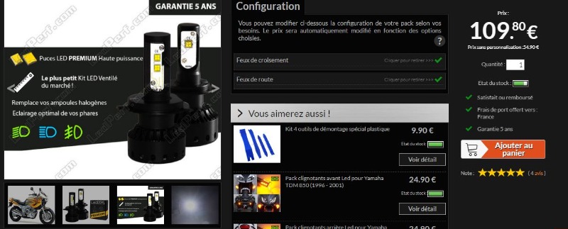 le problème chez eux c'est qu'il faut compter un mois mais bon pour le prix on peut attendre un peu. Pour la chaleur j'avais peur au début, je touchais l'optique ou le cul du ventilo après avoir roulé j'ai jamais senti de chaud. La fiabilité jamais de soucis sur la moto mais comme c'est dans le phare il n'est pas allumé en permanence, par contre j'en avais monté sur la voiture (h4) j'ai changé de voiture et les ampoules fonctionnaient toujours. (peut être ai-je eu de la chance...)